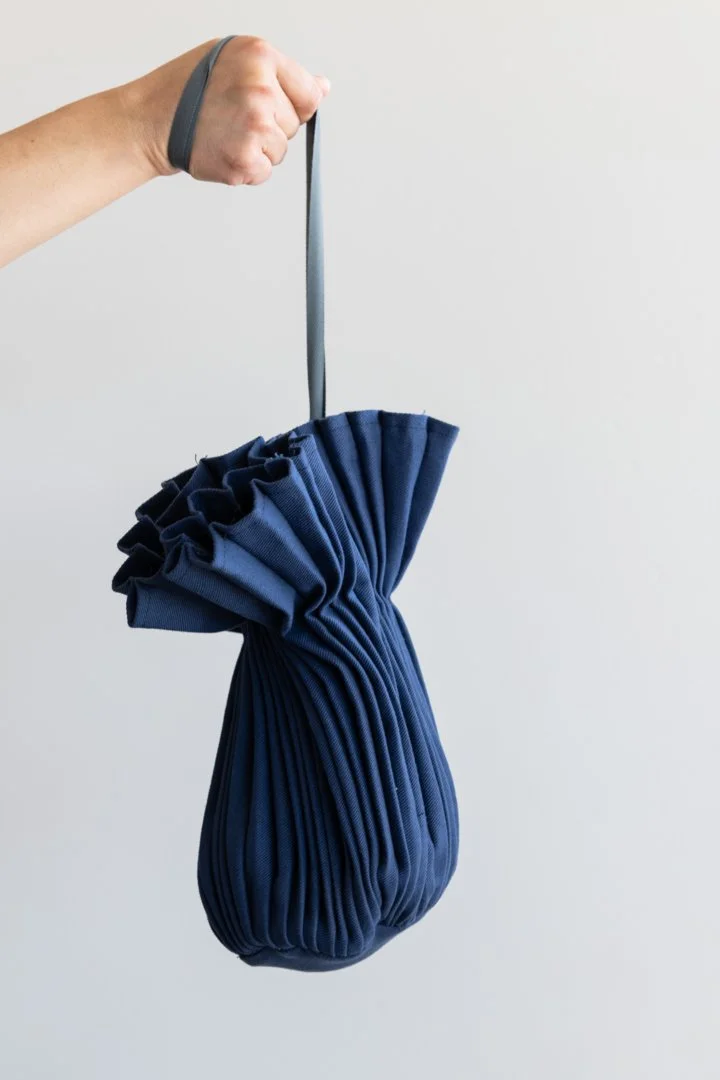 The initial direction was to design a bag that echoes the sculptural language of Omer Arbel’s bench—an outcome of his exploration into folding and pleating techniques.