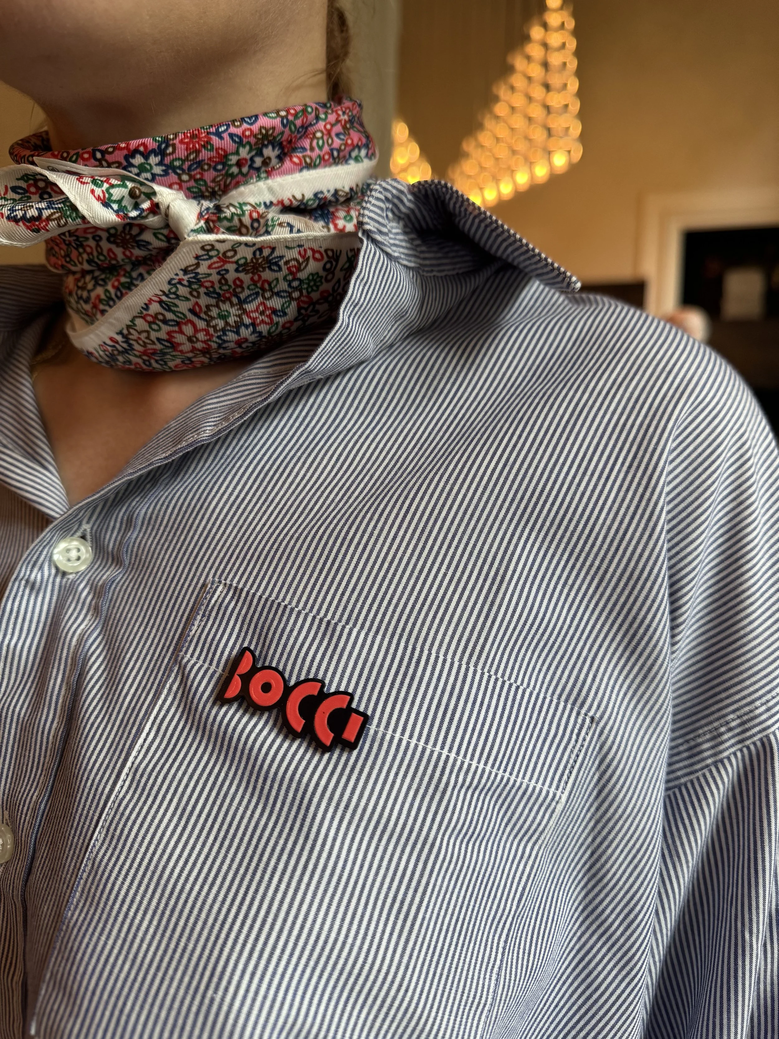 A minimalist pin created for Bocci staff, offering a discreet yet recognizable way to embody the brand at public events.